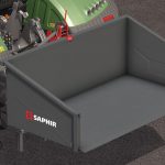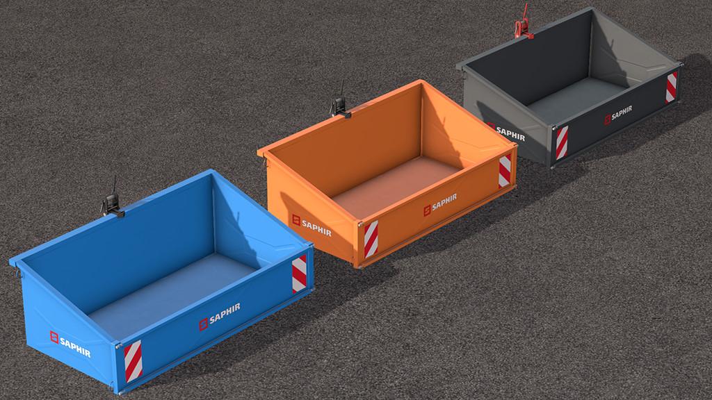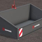 The TL 200 of the company Saphir is a transport container that can be used for transport of all kinds. With a maximum weight of 750kg, pallets can also be loaded and secured with straps. The device is mechanically tiltable and can be attached to any tractor with a Cat I or Cat II attachment.
