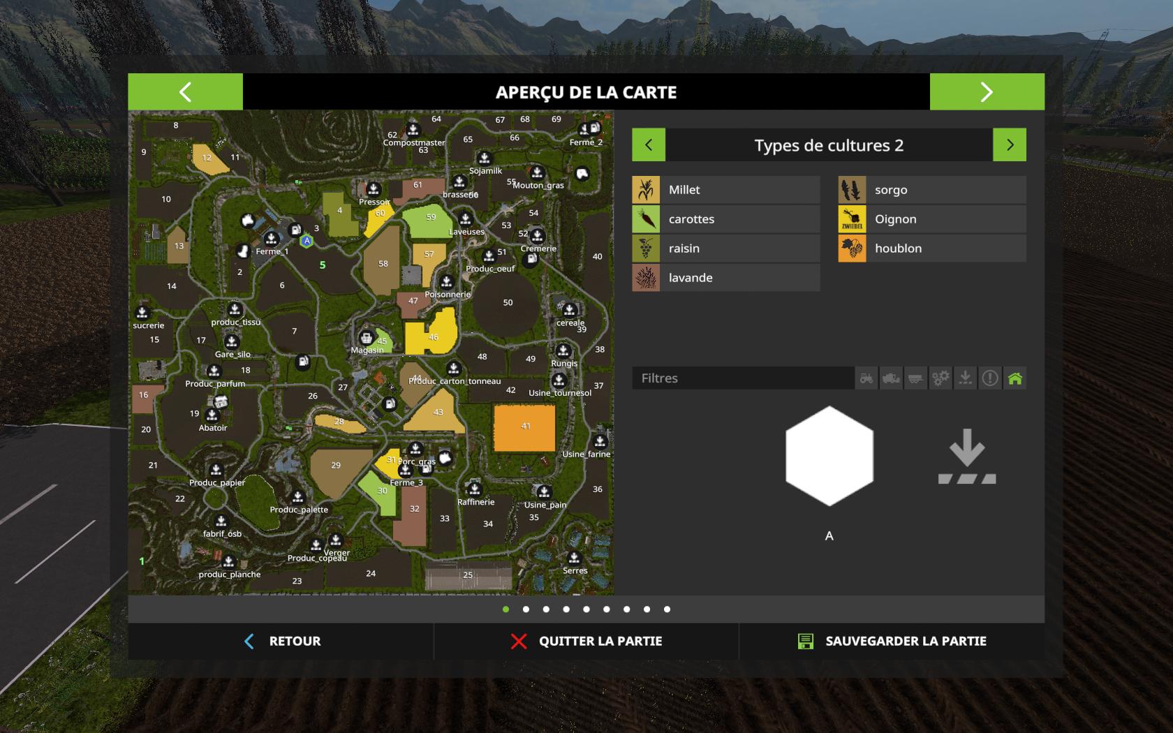 3 fermes, 26 usines qui fabrique 56 produits different, 10 ventes , 69 champs de toutes taille divers animation