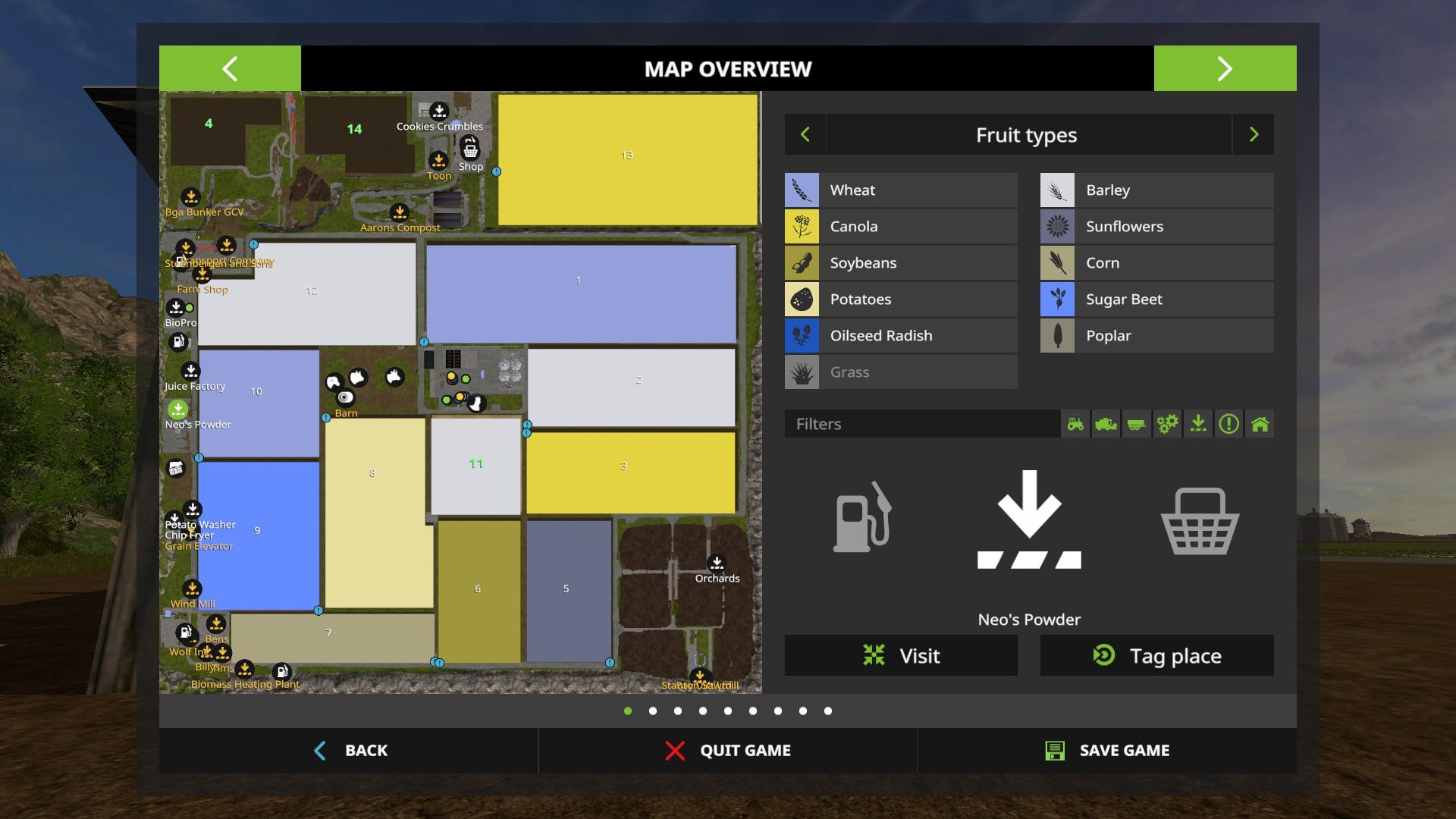 Seed Master 2k17, CompostMaster 2k17, BioPro Facility, Bakery, Flour Mill, Orchards, Potato Washer, Canola Oil Factory, Chip Fryer, Tim’s Tables.