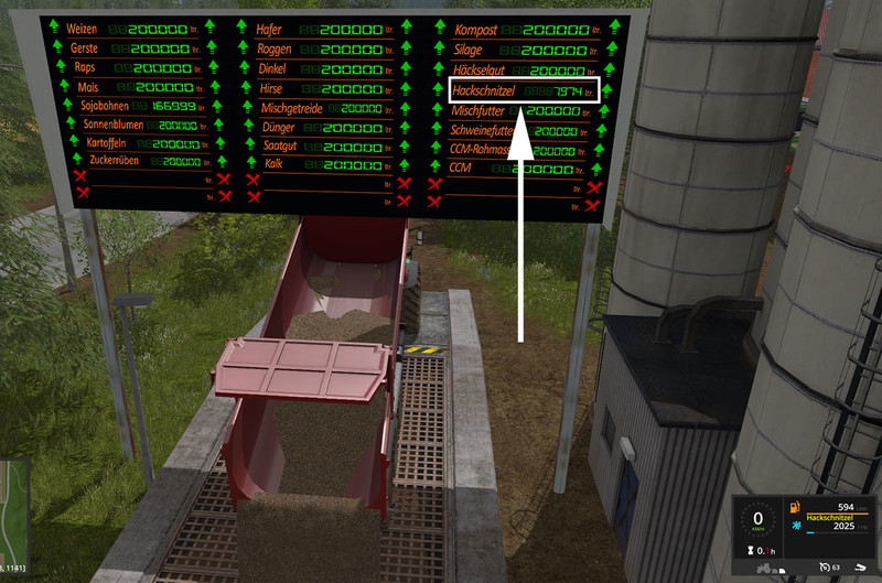Bei der Railroad Mill kann neben Weizen, Gerste, Raps, Mais, Sonnenblumen, Sojabohnen, Kartoffel und Zuckerrüben, nun zusätzlich auch Hackschnitzel verkauft werden.