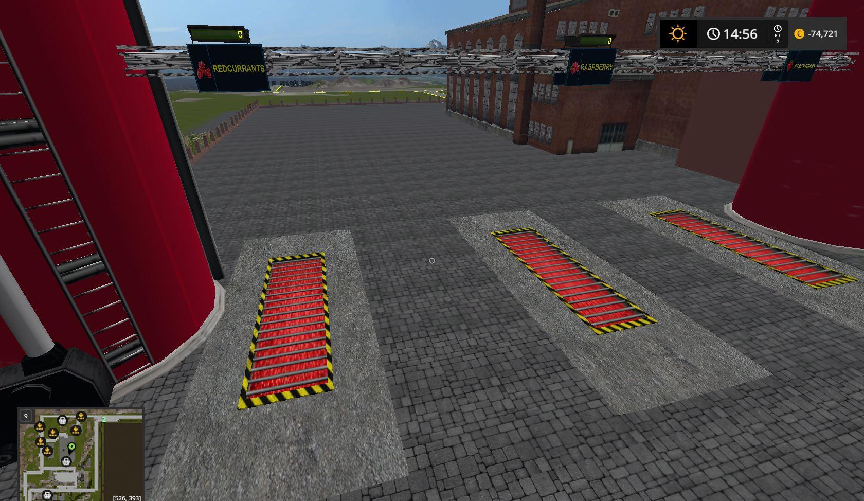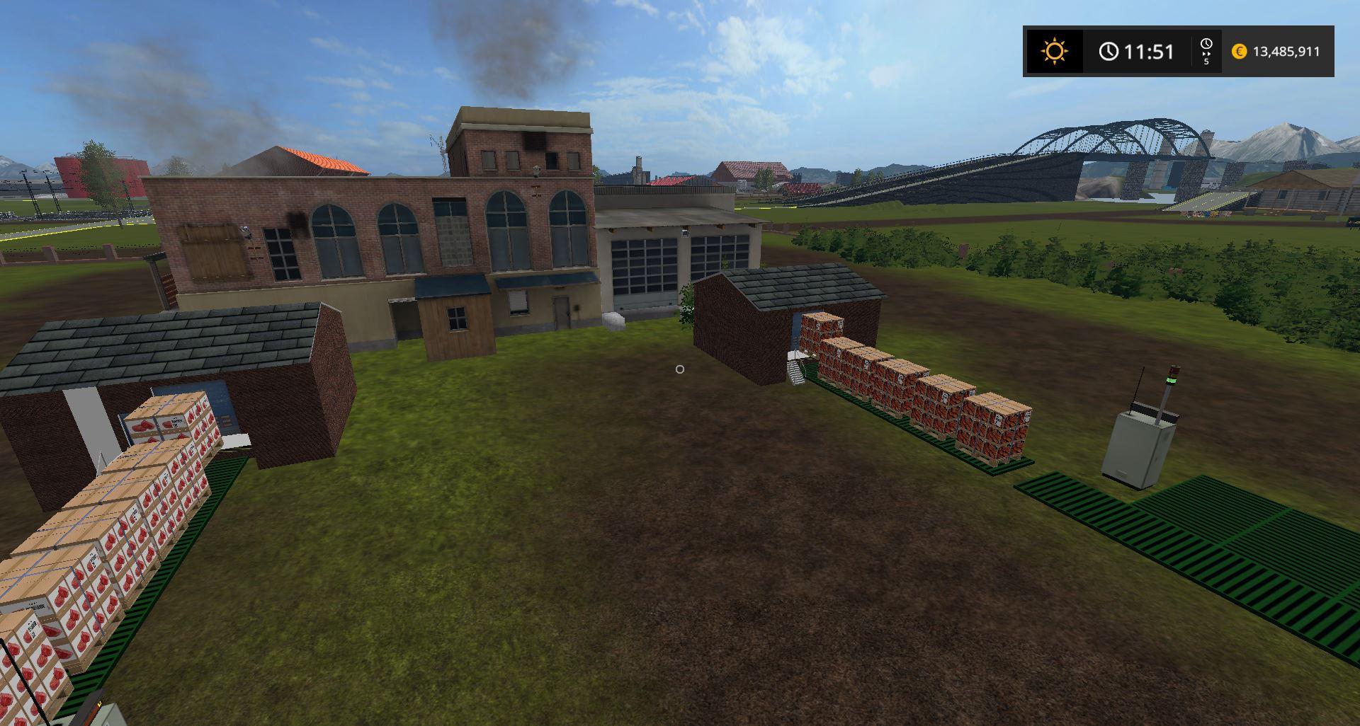 BGA, Cannery (saladMix), Cake factory, Yogurt Factory, Refinery, Hmilk, Distillery, Sawmill, Sand_Gravel, Sugar factory, Compost Master, Mill, OilMills, Potato Center (washed potato, steamed potatoes), Reibekuchen, Soya, Weberei, Pallet Eggfarm, Greenhouses (strawberry, raspberry, redcurrants), Greenhouses1 (tomato, cauliflower, lettuce, pumpkin, melon), Cardboard, Dairy, Fish (caviar, live and frozen trout, fish meal) , Noodles, Juice, Backwaren, Whiskey, Fermenting Silo, Dryer, Forage Factory, PigFood factory, Slaughterhouse, Oilfield (Motoroil factory), Cement factory, Concrete factory.