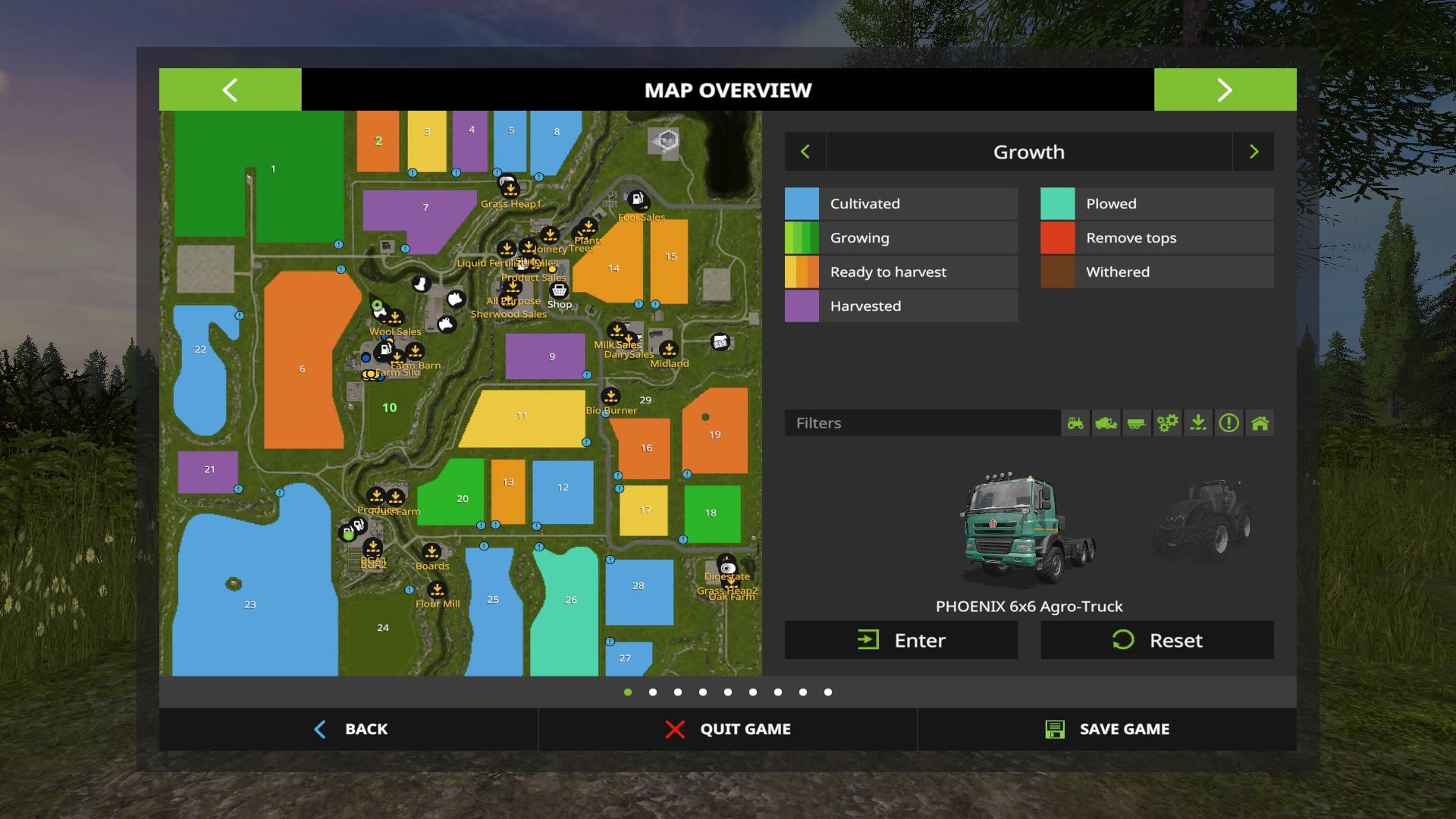 Textures modified for oats, rye, rape stubble cotton and sorghum distance textures, water reeds, flowers and grass added to deco weed foliage, Milk max settings adjusted, tree, plant and fruit farm compost usage adjusted, water mill wheel rotation matched, water mill particles adjusted, straw buy point added to the farm by the conveyor, ground markers adjusted, sheep dirty area adjusted, water bump and speed adjusted and reduced, lighting adjusted, menu items fixed and much more. The biggest visual change for the map is that I have remade all the cutter effects for the multifruits now as well.