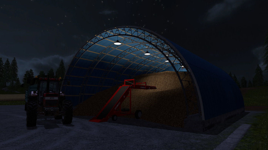 This storage building is for Beets and Potatoes. This object functions like the stock Silo or Hayloft, but for root crops. The building and conveyor belts are authentic to how root crops are actually stored.