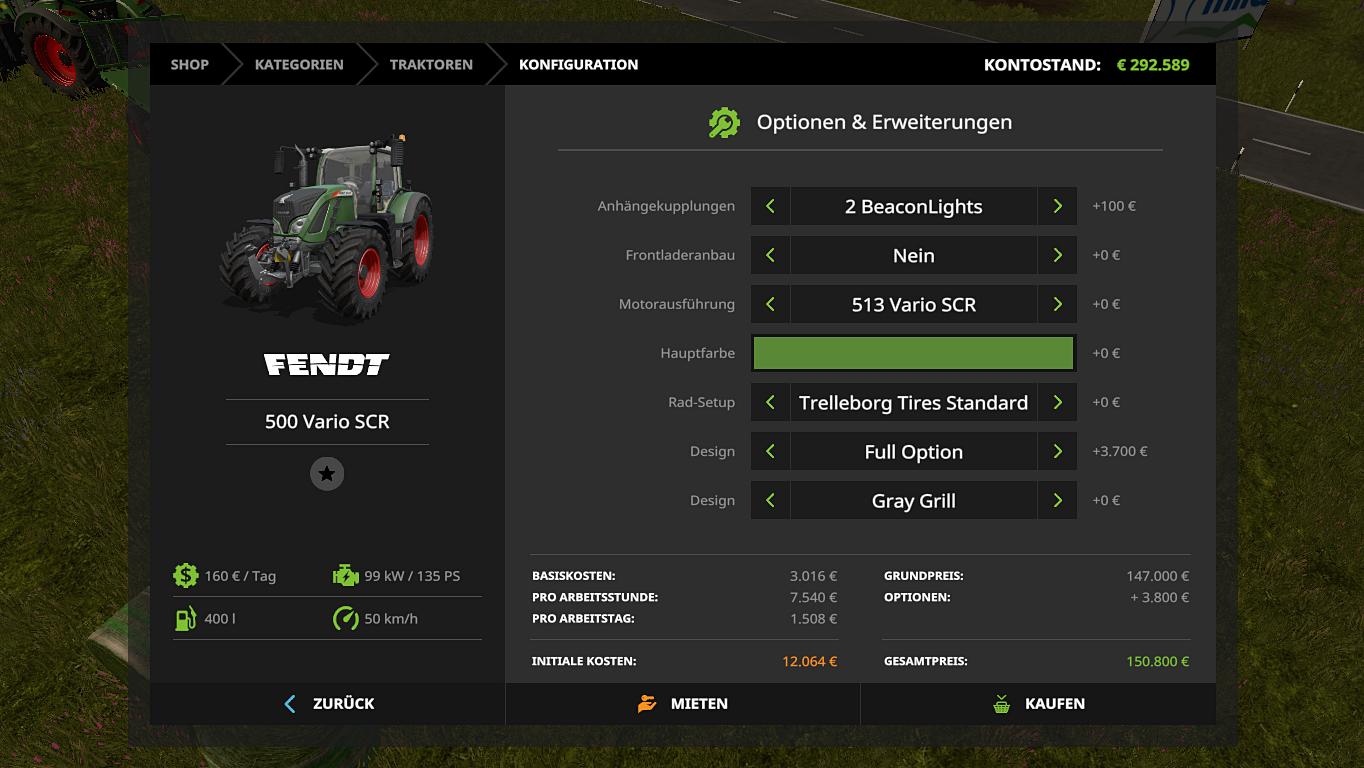 Ackerschlepper Fendt 500 Vario SCR für Landwirtschafts Simulator 17. Der Wert des Traktors im Spiel, €: 147000
