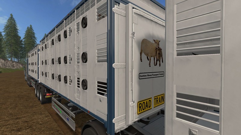 Animal Transport – These trailers feature Twin Level transport with the ability to move 32 Sheep, 27 Pigs and 20 Cows in the A-Trailer and 42 Sheep, 38 Pigs and 26 Cows in the B-Trailer. They will also transport Chickens in a future update. These smart trailers will automatically open the roof, side windows and start all the cooling fans whenever there are animals inside the trailers. They will also display rear Animal transport signs and display a picture of the current animal type to warn that crazy FarmSim traffic to take care.