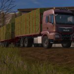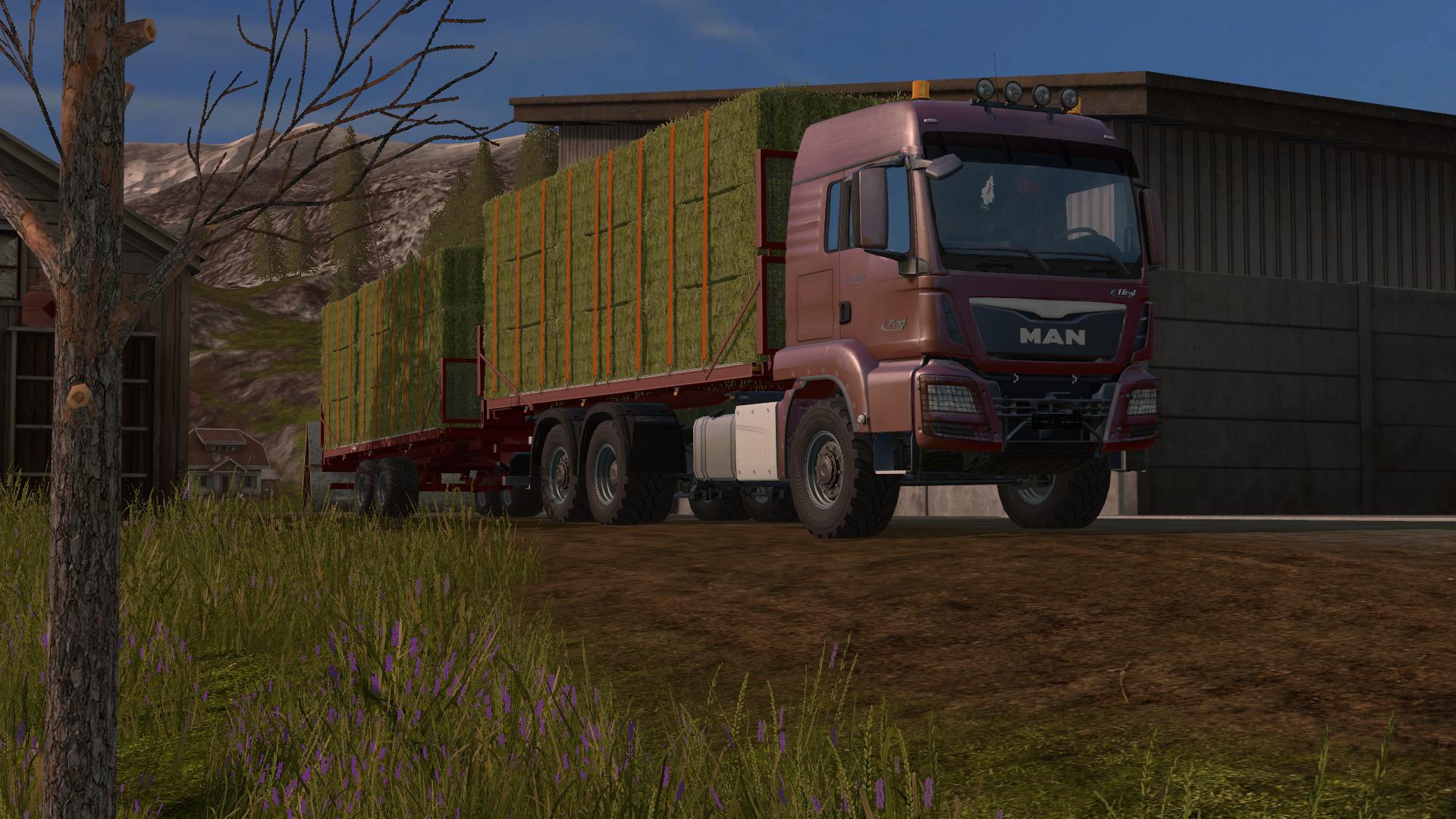 man kann theoretisch auch mit Forstaufbau und UAL Güter laden; von solchen Kombinationen ist aber abzuraten. Gleiches gilt für Rundballen-/gerader Aufbau mit WoodAutoLoad
