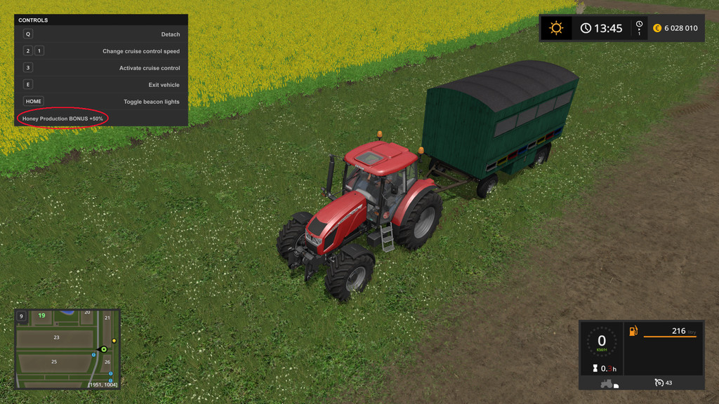 – 50% production bonus, if beehive is located close a field with flowering rape
