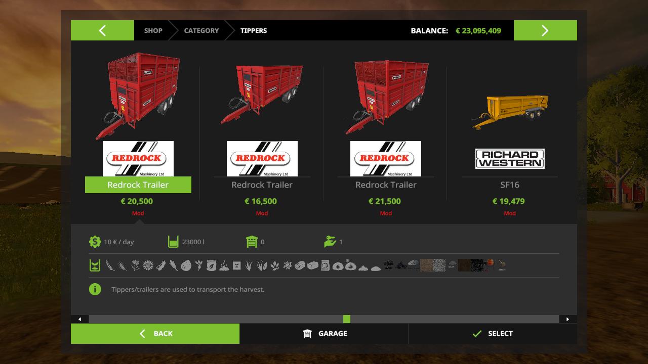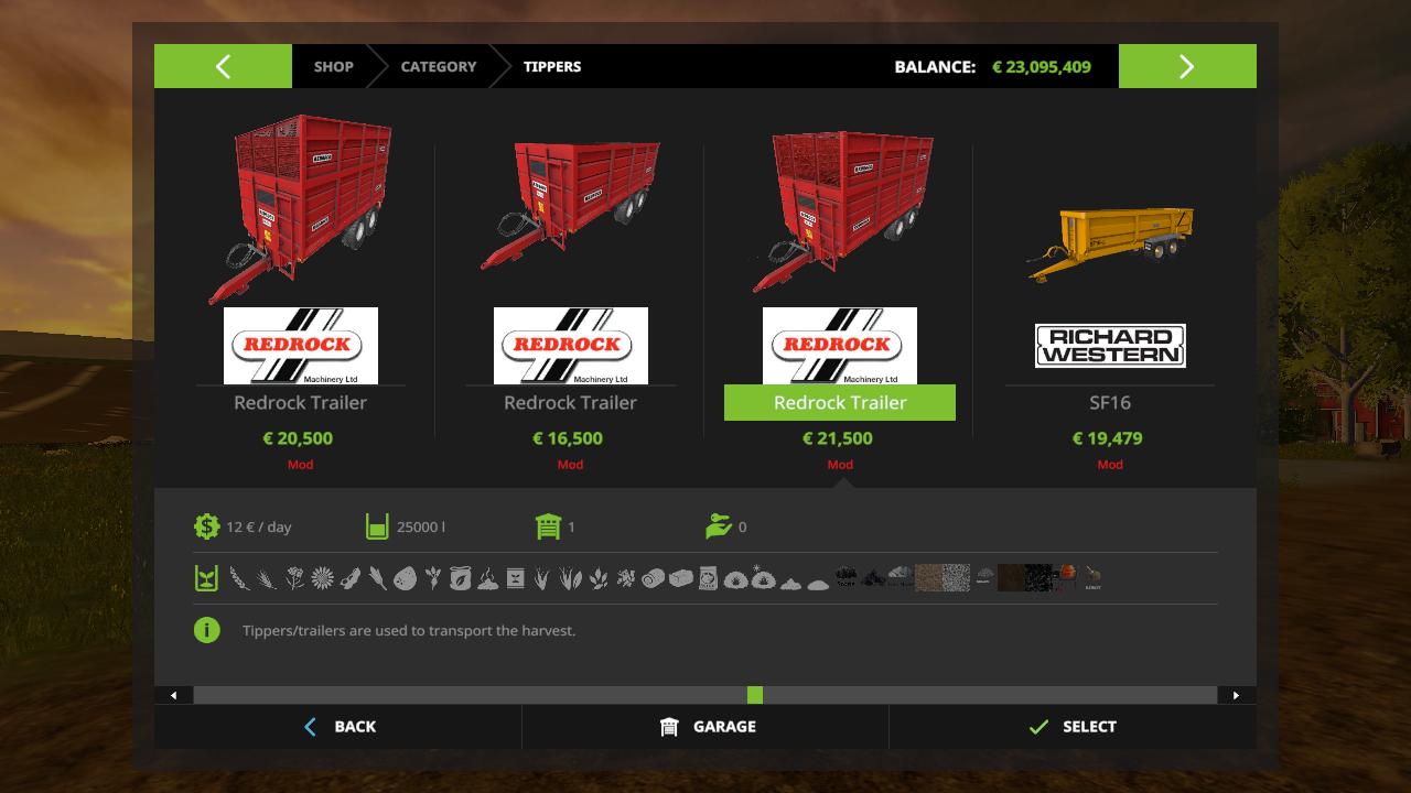 here are some redrock trailers by cd modelz they hold all crops and dirt and more its not my mod im just uploading them for everyon out there to have fun with some good trailers all credits go to cd modelz thanks for uploading them to gaints now its for anyone have fun.