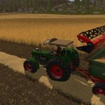 Note : it fits the Claas Dominator 118 SL of SiiD, Rival and Bluepanther from the modhub of Giants, the Claas Dominator 88s also from the modhub of Giants. In addition, the cutting unit can be coupled to various Claas Mega 208 and Claas Lexion 700 , as well as to the Giants standard threshers. The Deutzschneidwerk has also got a connection for the John Deere T660I / T670I. For this I have created different shop categories . The Deutzdrescher (link below) is coupled via the Giantsanschluss . Furthermore, there is a small time delay when folding up and down, caused by the animated mounting of the PTO on the thresher. To unify the PTO animation I have attached a bracket (rustic but functional). A visually better mount is provided for a possible later version. Rapeseed knives are vebaut. The C960 cutting deck has the texture of the C540 cutterbar adapted by PeterAH. The Deutz 7545 is based on the original LS-13 texture. Unfortunately, I am unable to produce an LS-17 texture.
