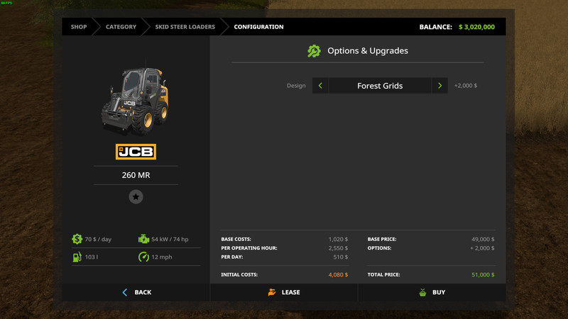 This is the default JCB Skid Steer with forest grids as a store option. The pack comes with 2 versions one is MR (more Realistic) Compatibale.
