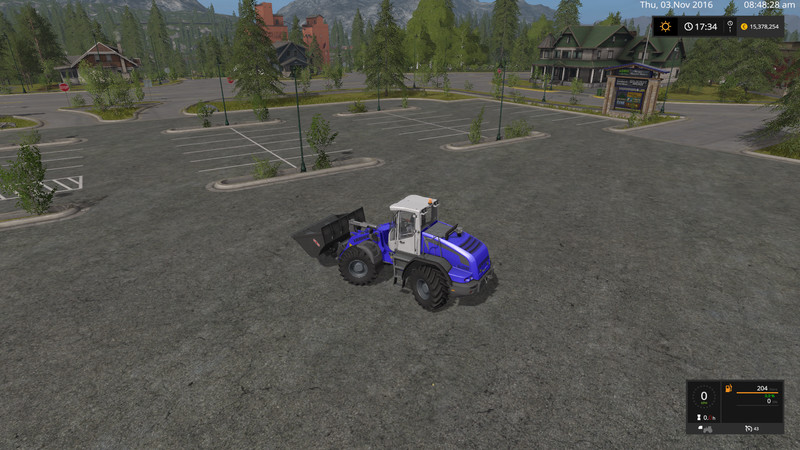 As in FS15 here as well the Liebherr L538 incl. AllWheelSteering (and more, see bellow) in the fashionable blue of the AG NilNomen. This little Powerhouse got an updated Engine with a max of 413bhp at 1600RPM and a max RPM of 2200.