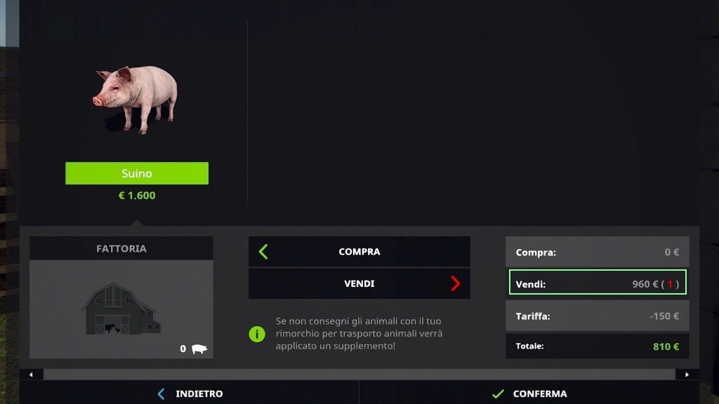 changed the pig’s price to have a realistic selling price (950€) and a realistic purchase price for the breeding pig (1600€);