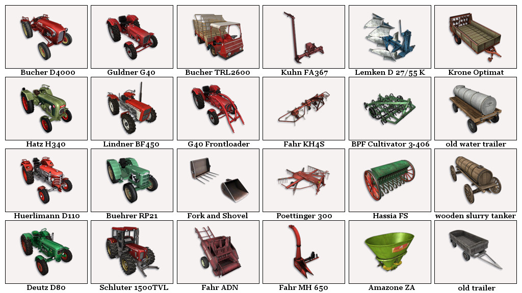 This is a conversion of the GIANTS FS-15 Farming Classics DLC. This is a collection of historical tractors and tools from the 1960s.
