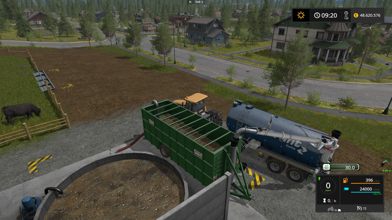 Now for the Ausbringgeräten. In all dispenses between 10m3 / ha and 40m3 / ha can be selected. This appears in a Hud. The application rate is kept constant, no matter how fast you drive. You may like to check. Thus a precise fertilization is possible. I also have the Particle inserted from the manure as you can see in the pictures. The map must be sure not vorbeitet because his GIANTS standard feature. Thus, should work on each MAP. I like it. The dribble bar and Carriere’ve got a Paritclesystem on the hose ends.