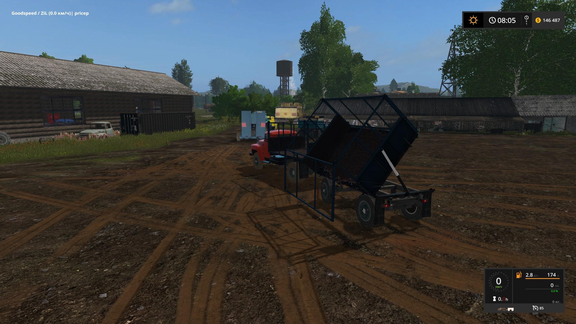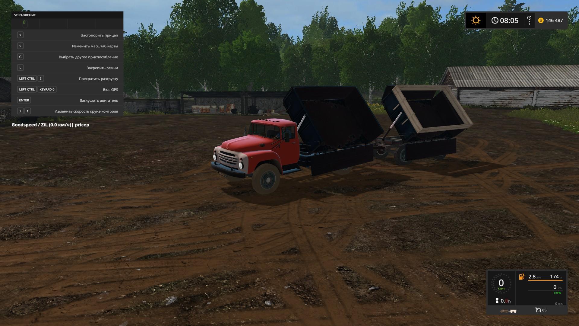 The model has three types of bodywork, the standard, exaggerated from the boards and high sides for lightweight loads. The default body type is “Z”. The turning circle of the trailer is locked with the “Y” key. With the mouse or the “K” “M” keys, the beads open for easy loading of objects, after which the objects can be fixed in the body with the straps on the “L”. The scoop has two body types + a live board. Tral with auto-selection of bales and pallets.