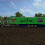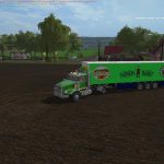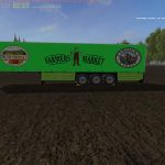 Voici le Truck + Trailer Farmers Market , the truck est un twinstar SX435 auquel j’ai ajouter 2 pancartes de chaque cote des portes , et pour la remorque j’ai pris des icone ou logo de la marque Farmers Market, la photo qui se trouve au devant de la remorque au niveau de la célète elle est positionner pour frigorifique, mais hélas elle reste a sa place quand ont choisi un autre modèle pour la remorque, mais rien de grave. Vous devez décompressez le fichier pour obtenir les 2 mods truck / trailer , Et pour finir la Capacity: 50000 L.