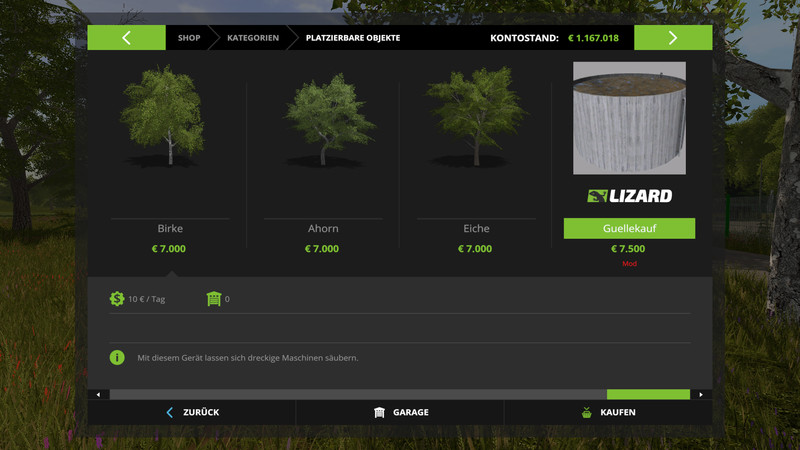 Finding a game interesting after investing 300 hours into it can become a bit challenging. But with mods as long as there is a new update is assured, you are guaranteed a few more hours of new exciting gameplay. FS 17 Placeable objects Mods are one of the greatest upgrades and can make your game unique. Downloading and adding FS17 Güllekauf Platzierbar V 1.0 Mod to your game is not difficult at all - you simply need to save a file and run it.