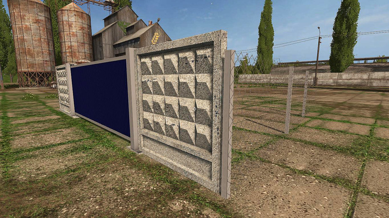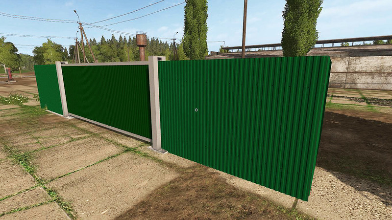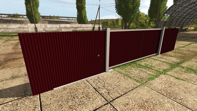 The pack of: 1) two concrete slabs (2.5 and 4.3 m). 2) three fences of corrugated board (3.5 m, blue, green and red). 3) one fence from the rabitsa (4 m). 4) one post to complete the fence. 5) a gate of four colors (blue, green, red and dark gray with signs). The gate is opened / closed by pressing the LMB. All objects are sold in the static objects section and are placed in any desired place on the map. The log is clean!