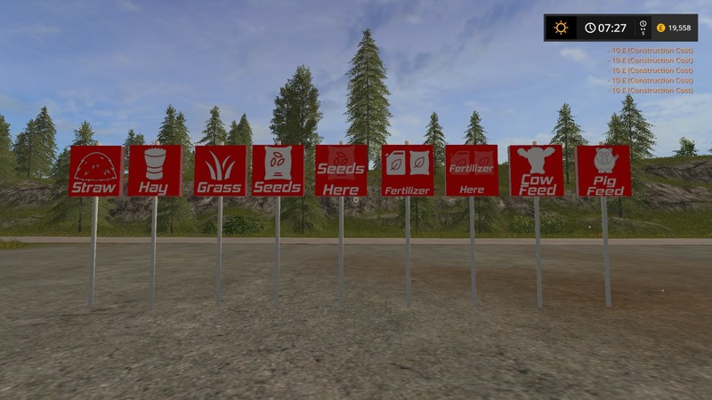 TSR Sign Pack is a sign pack includes a variety of signs for many different uses. Some just for fun and some with a more serious side. The pack was originally made for TSR also known as The Simulator Radio Private Farming Sim server (Yes, the radio found in game). The pack included the following categories: