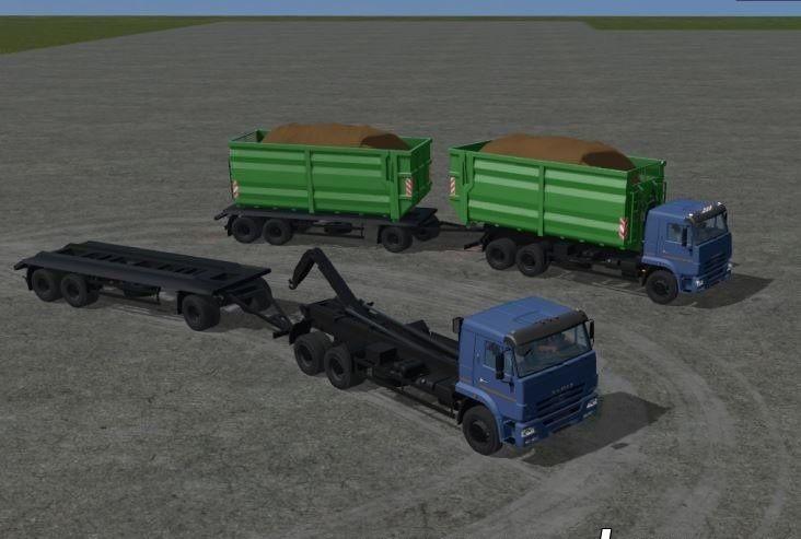 2 – for loading / unloading on the trailer – lower the hook (you can use the mouse or “X”) -> pick up the container on the ground -> drag KAMAZ only with the mouse -> unload the mouse onto the trailer -> unhook.