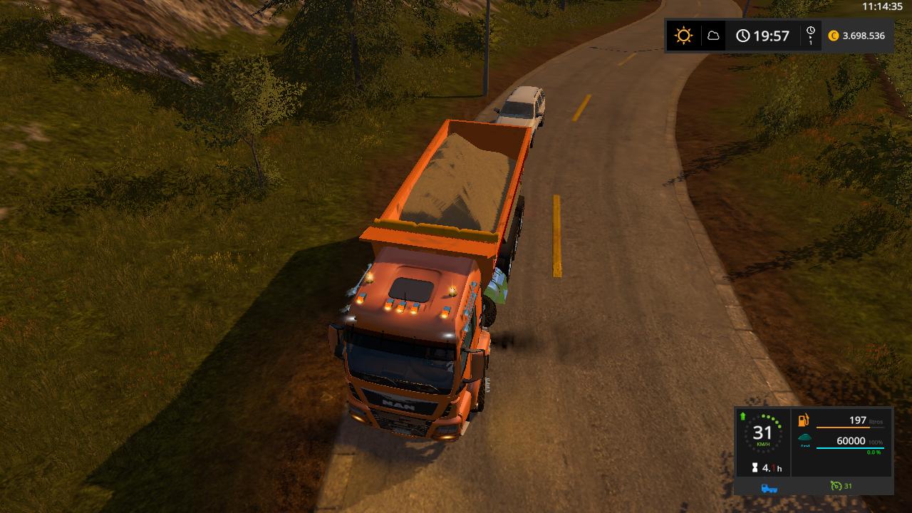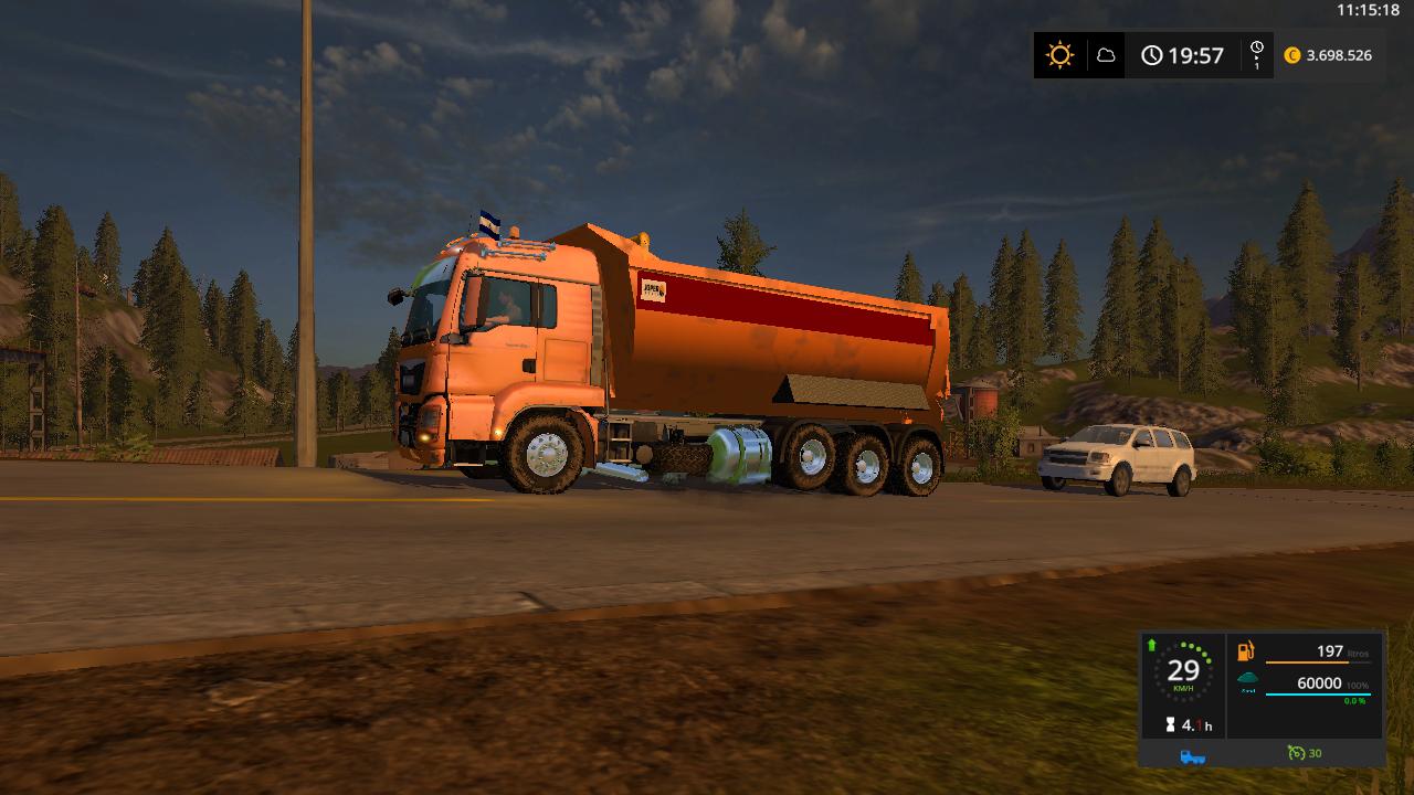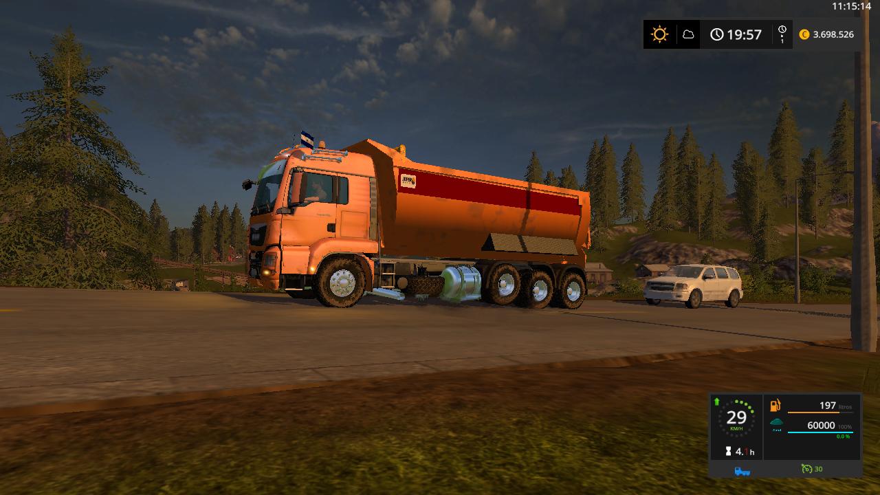 I offer a version of the Man Dump truck for farming Simulator 17, for the use of the farm in the transfer of the crops and also for the construction maps, this is a version published in FS15, with a capacity of 60,000.00.price 205,000 third floating axis.