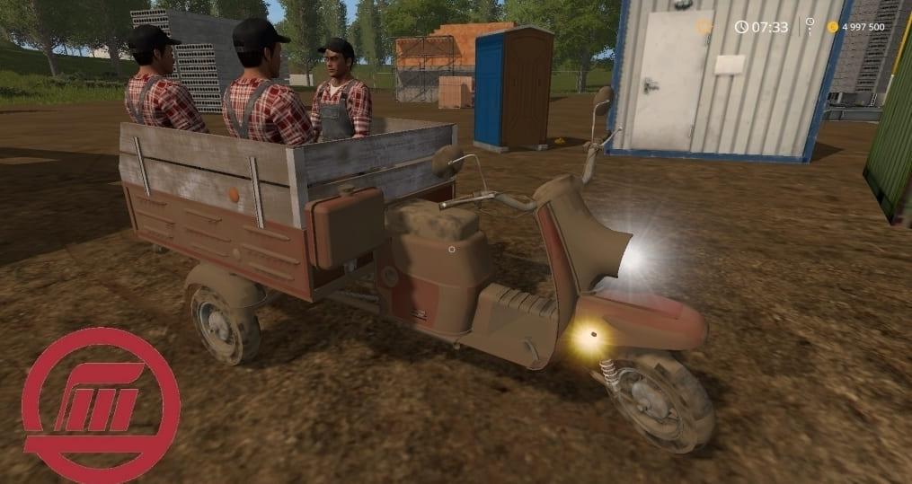 Max. power – 11 hp. Max. the speed is 60 km / h. Body volume: 2000 liters. Transport all standard goods. Choice of design (passenger and cargo) Speedometer, three passengers Log clean Washable Lighting Technology Leaves traces Flies dust from under the wheels.