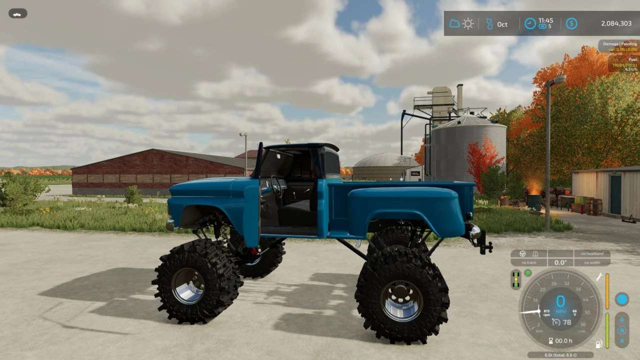 FS22 1966 Chevy K10 shortbed by MT_Militia Mods – GearWrench Modding edited by Dustpan03. Edited wheels & tires, tint, engine sound, and suspension height. Added dynamic suspension to the rear so its full dynamic now.