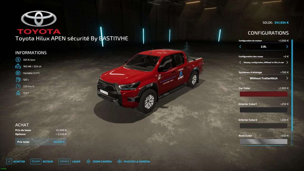 I am offering you a new, more modern version of my Toyota Hilux from APEN private security released on FS19, and today I am releasing a chassis from Toyota which is more recent dating from 2021.