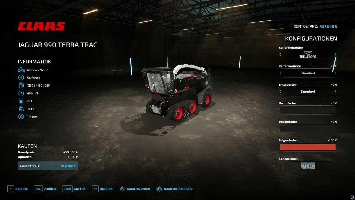 Claas Jaguar 990 TT with color choice (adjustment of the performance and sticker on the vehicle)