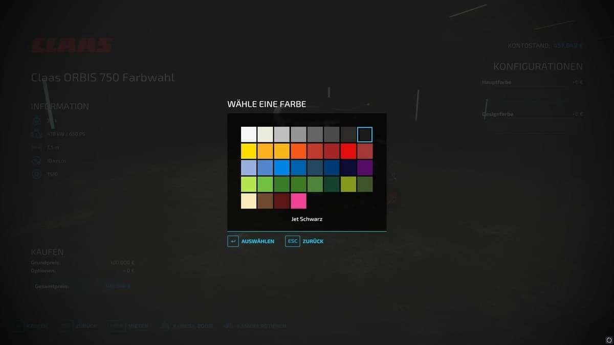 Claas Jaguar 990 TT with color choice (adjustment of the performance and sticker on the vehicle)