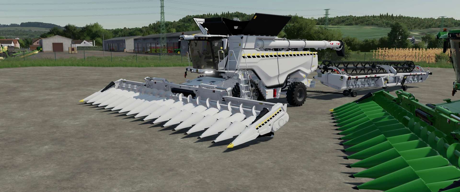 X9 White with custom decals on harvester grain and corn headers. In a separate folder, the Draper Header is green and white.