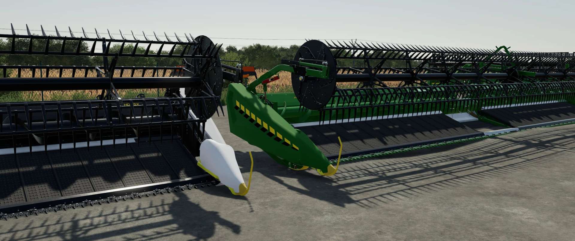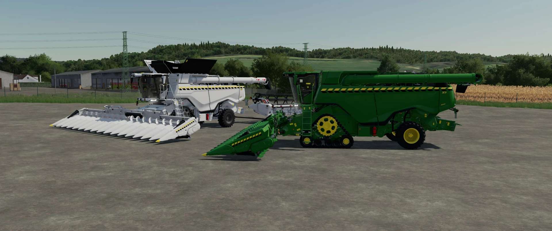 X9 White with custom decals on harvester grain and corn headers. In a separate folder, the Draper Header is green and white.