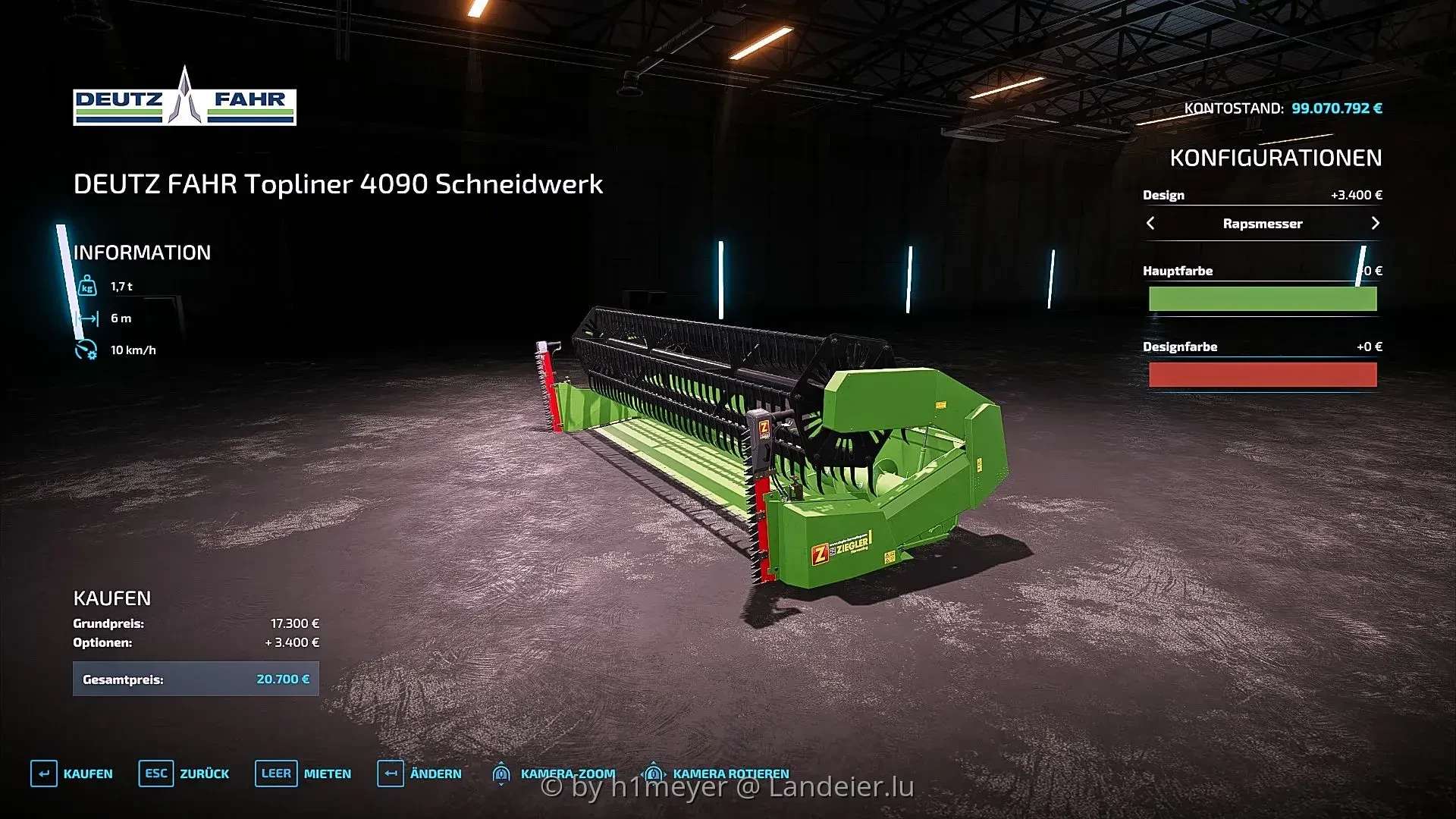 I offer you the Deutz Fahr cutting unit of the Topliner 4090 in a 6m width with removable stalk dividers via IC Control (Vertex) or when mounted from the thresher using the which appears in the game as if by magic on the original cutting unit, must be configured in the shop or workshop for this cutting unit.
