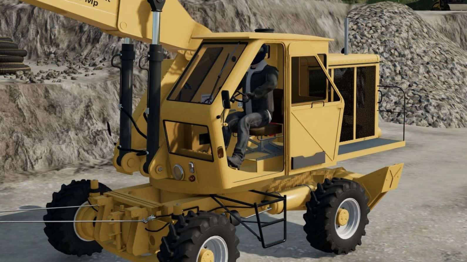 The excavator and accessories have been fully restored for FS22.
