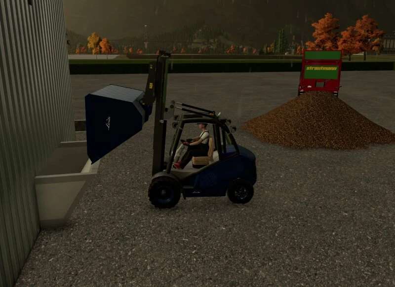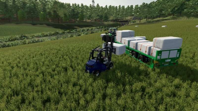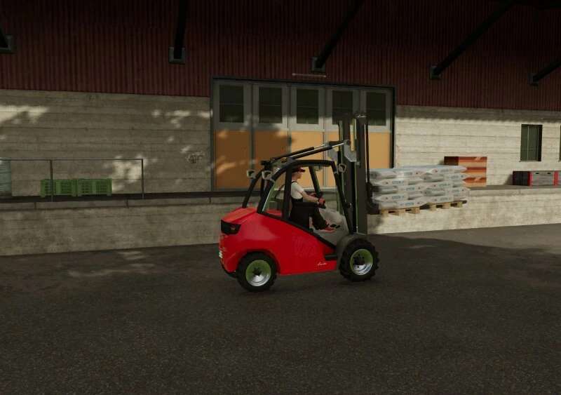This mod package contains three Linde forklifts, two 6.4 ton forklifts, optionally with electric or diesel motors, and a 4.9 to Electro forklift. They are available in the Linde designs red, yellow, and blue. There is also a Hischfeld Edition and an HoT edition. It is a forklift that is used on many farms for handling grain or for potato logistics.
