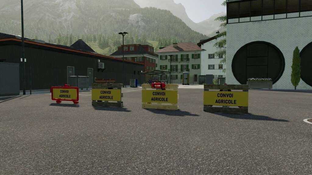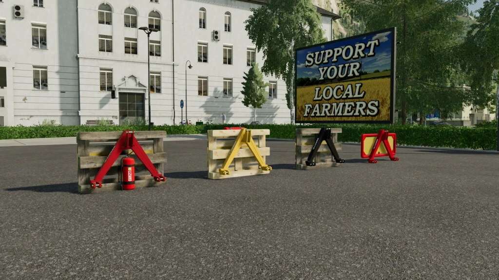 Here is a pack of farm convoy signs that you can attach to a 3 point hitch, you can remove the farm convoy sign as a tarpaulin with the n button (Agricultural Convoy Pallet).