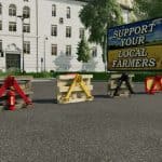 Here is a pack of farm convoy signs that you can attach to a 3 point hitch, you can remove the farm convoy sign as a tarpaulin with the n button (Agricultural Convoy Pallet).