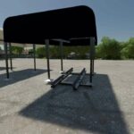A boat lift for your lake place. This is a trailer found under the implements ‘misc’ folder in FS22. The trailer tongue itself is invisible until you back your truck up to the trailer and attach.