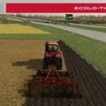 Originally designed and manufactured by DMI as the DMI ECOLO-TIGER prior to being bought out by Case IH, the Ecolo-Tiger was designed to be a primary tillage implement that could cut through thick residue using a tandem disk in the front and then break up compaction deep below the surface using ripper shanks, and follow it up breaking up clods and covering the trenches from the ripper using the disks in the rear. In Farming Simulator 22 however, it serves two functions, first the tandem disk in the front mulches residue, then the ripper shanks plow, this allows you to get a slight yield bonus over moldboard plowing in one pass.