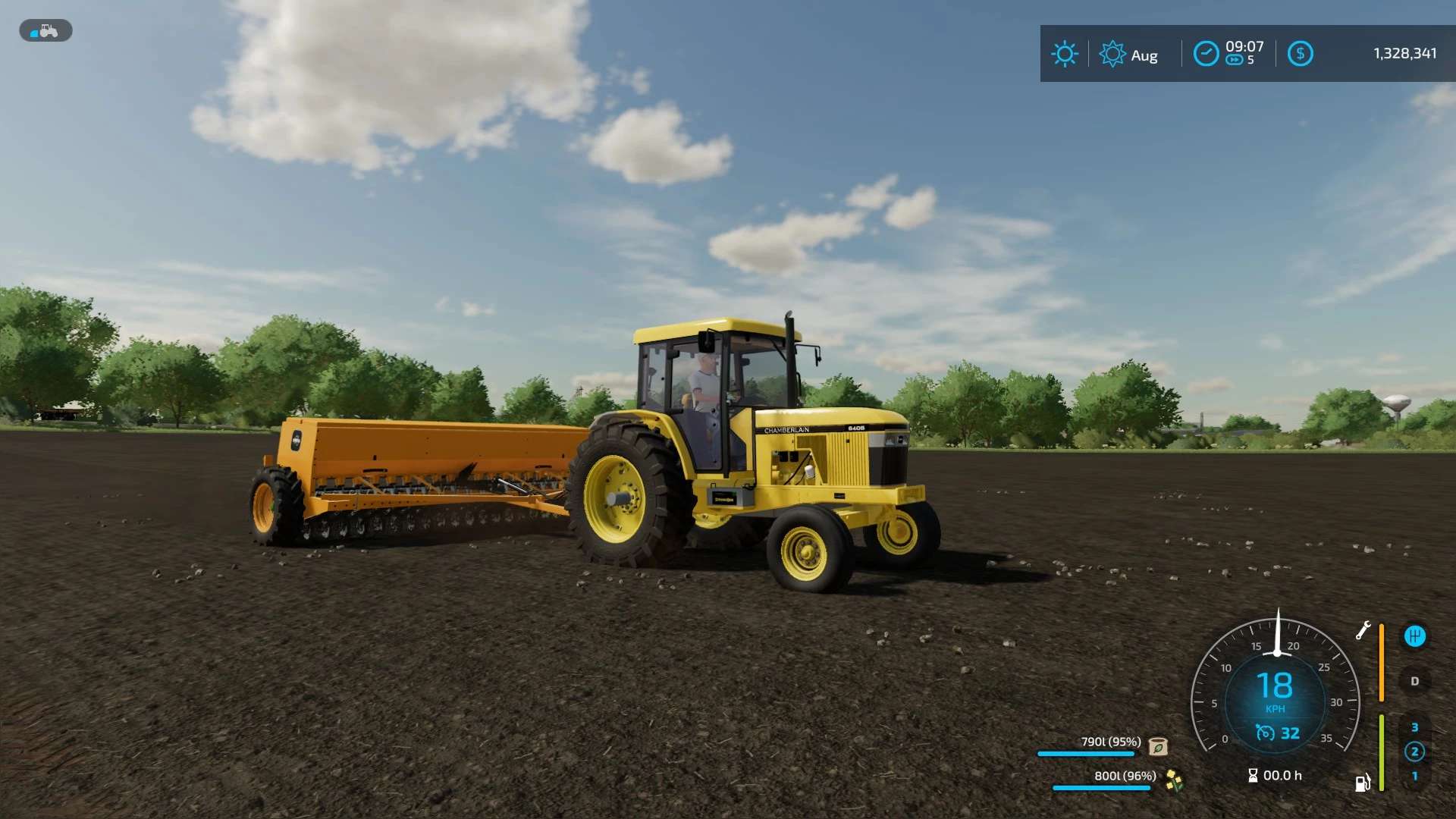First off the production line of mods for the Itch.io page is the Chamberlain Mark II combine. This drill is a reskin of the ARM-team’s 8350 JD drill but with Chamberlain branding, and colours.