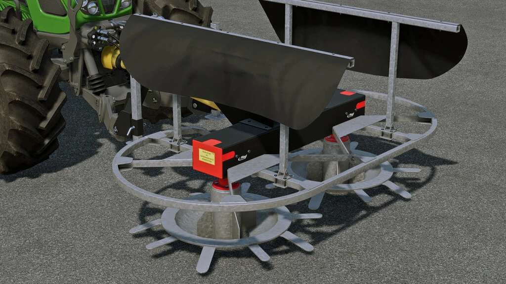 The Fliegl DUO is a flat silo spreader that can be used for both front and rear attachment. The hinged protective tapes allow for controlled distribution.