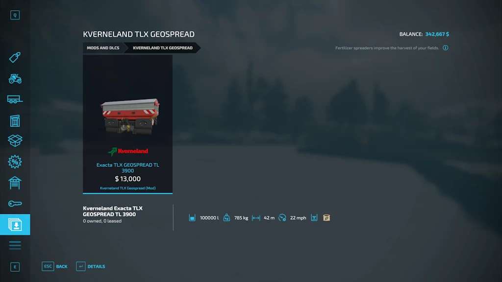 Finding a game interesting after investing 300 hours into it can become a bit challenging. But with mods as long as there is a new update is assured, you are guaranteed a few more hours of new exciting gameplay. FS 22 Implements & Tools Mods are one of the greatest upgrades and can make your game unique. Downloading and adding FS22 Kverneland TLX Geospread v1.3 Mod to your game is not difficult at all - you simply need to save a file and run it.