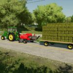 A small square baler with an ancestry going back decades, the Massey Ferguson 1840 traces its roots back to the inline baler design pioneered by Hesston. This baler is a revision of the basegame Massey 1840 that incluedes a number of additional features, including the ability to pull a wagon with the rear hitch.