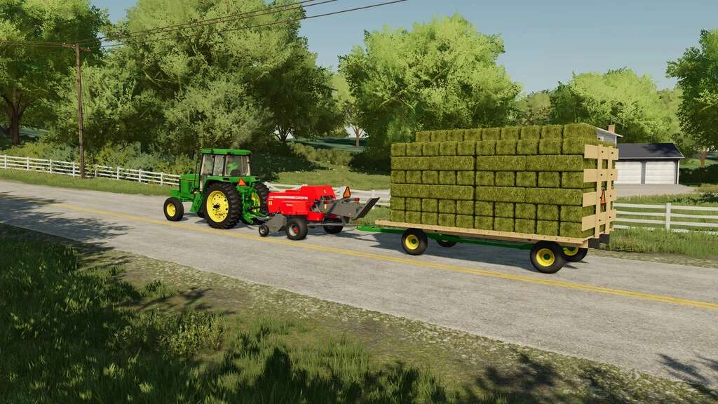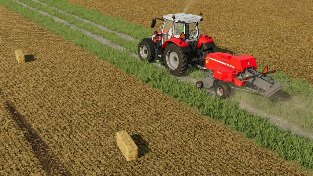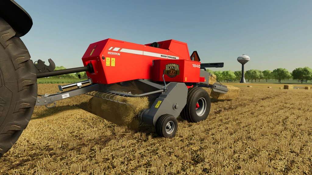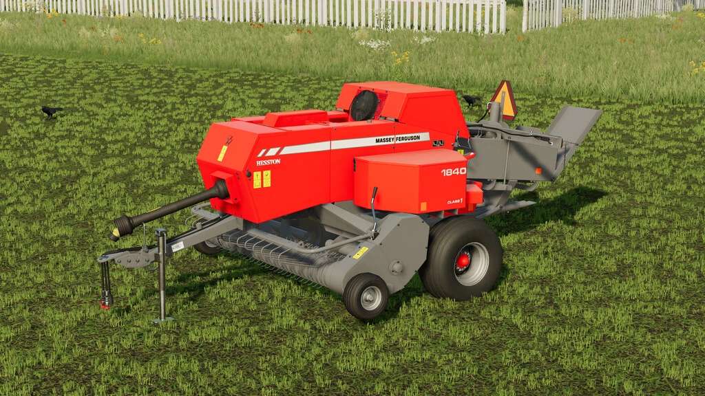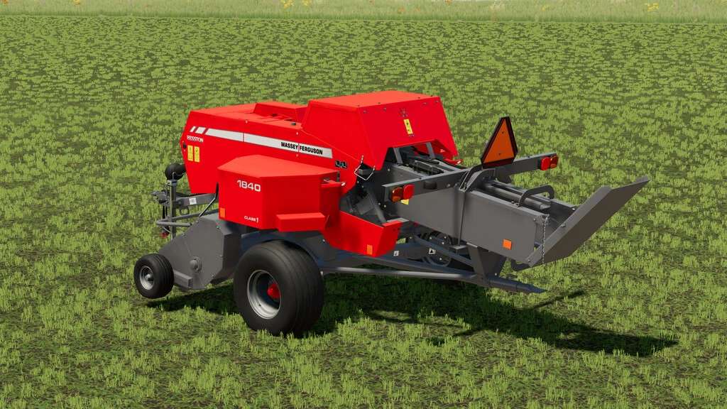 A small square baler with an ancestry going back decades, the Massey Ferguson 1840 traces its roots back to the inline baler design pioneered by Hesston. This baler is a revision of the basegame Massey 1840 that incluedes a number of additional features, including the ability to pull a wagon with the rear hitch.