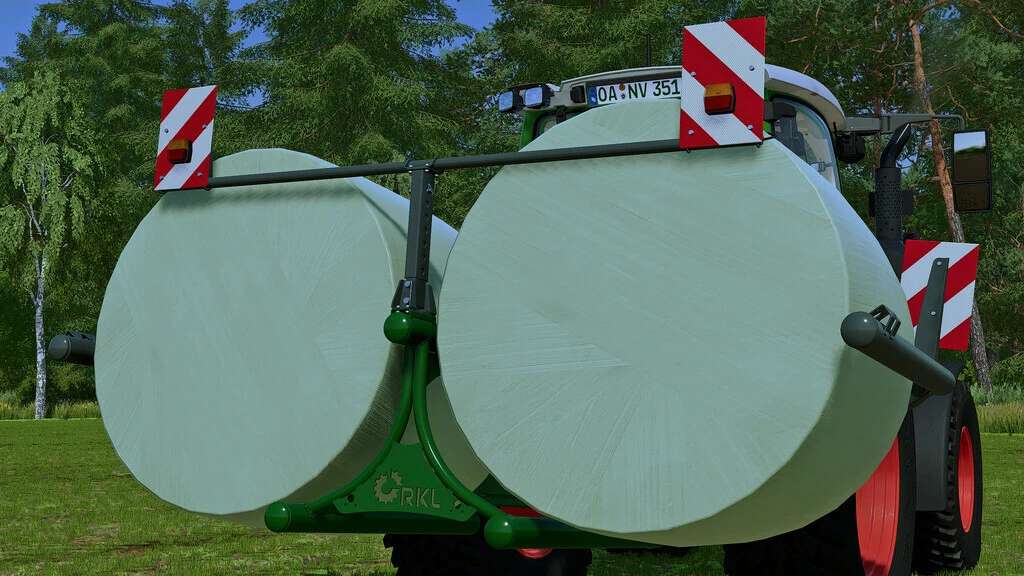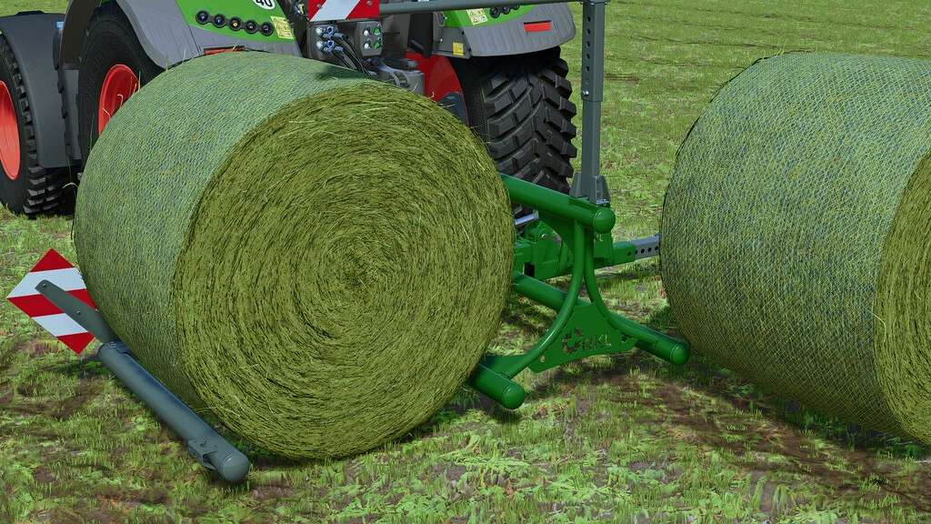 With the double bale fork developed by RKL Machinery, each round bale can be picked up individually and secured against slipping by means of clamping!