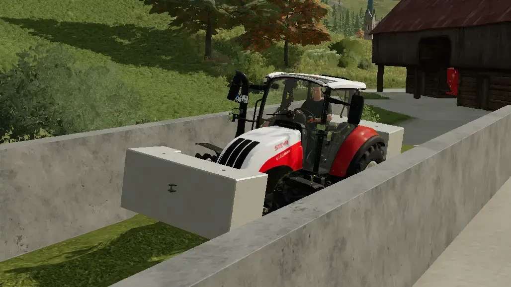 This homemade weights made from concrete, with a mass of 3 and 5 tons, are perfect for compressing the harvested grass and cropped corn at your silage plant. The 3to weight can be used in the front and back, the 5to weight is used as back weight.