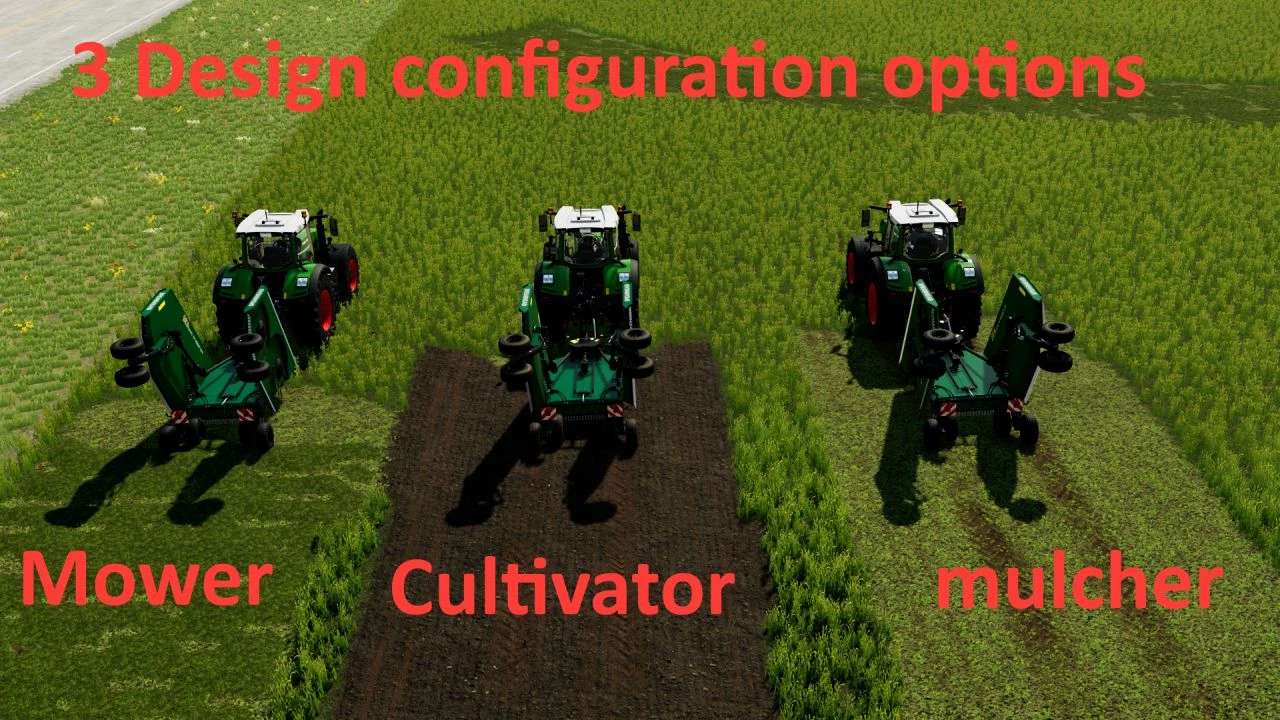 The work function can be switched between mowing, mulching or cultivating.