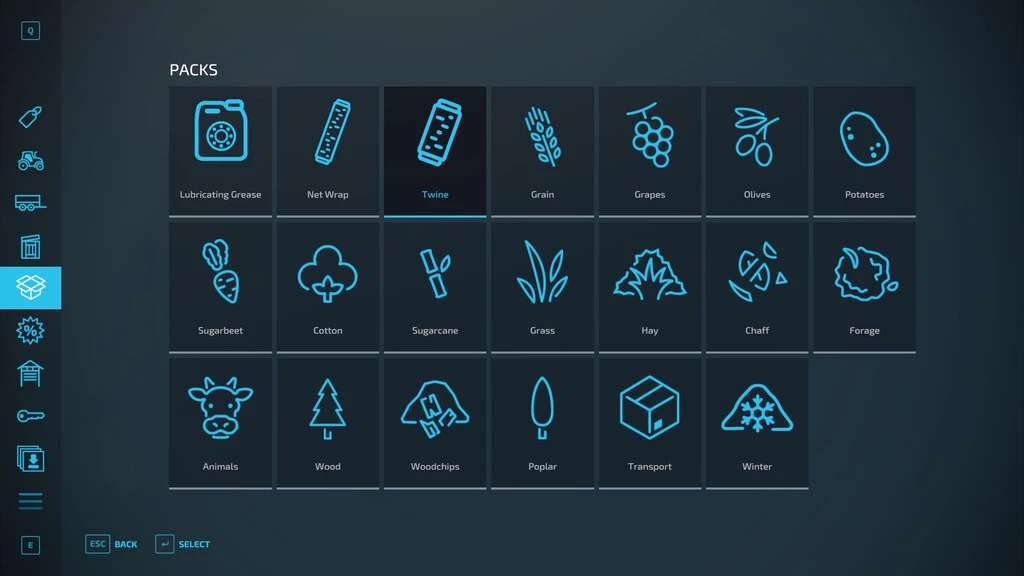 This package add the management of the twine for square balers, the twine is used every time the bale increase the fill level. The baler for the square bale can be filled with the twine, using the pallet with 48 rolls of twine. The pallet is present in the pallets category of the store. Every roll has lenght of 1.000 to 2.500 meters and every bale is wrapped one times by default with six twine.