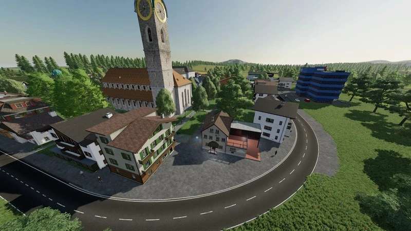 This is a fictional map. There are medium-large fields. A large forest area for forestry work.