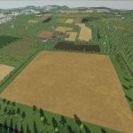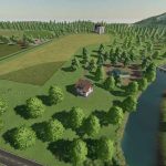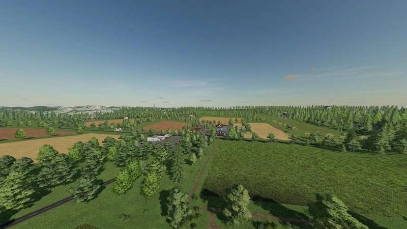 This is a fictional map. There are medium-large fields. A large forest area for forestry work.